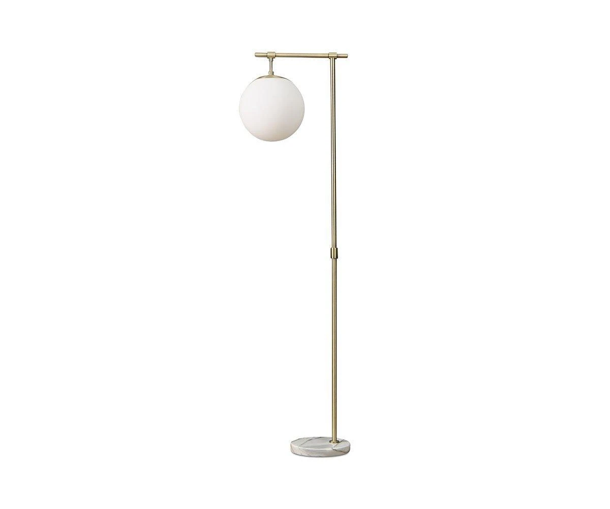 The Aerlig Floor Lamp displays an intriguing design that blends vintage style with modern flair, resulting in an eye-catching piece wherever it stands. A round glass globe suspends from the metal tube connected to the tall stand in a matte brass finish. Grounded by the round marble base, this lamp light is a handsome addition to your space.