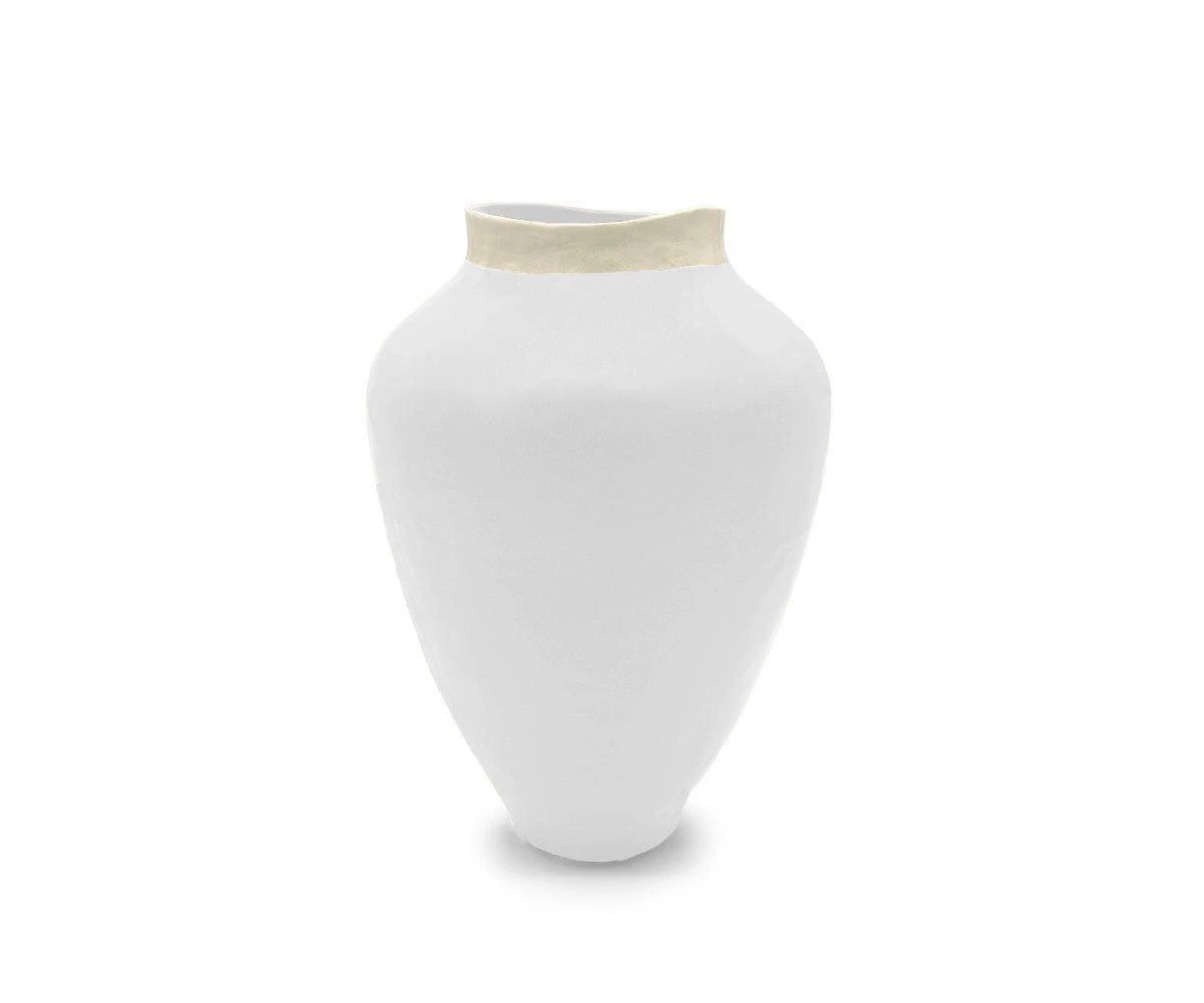 The Ceramic Halo Vase provides a perfect setting for a larger bouquet of your favorite flowers. Complete with a wide mouth and classically-inspired shape, this vase features a contemporary display of complementary dual-toned colors. Pair with other items for the Halo Collection for a cohesive display of modern style.
