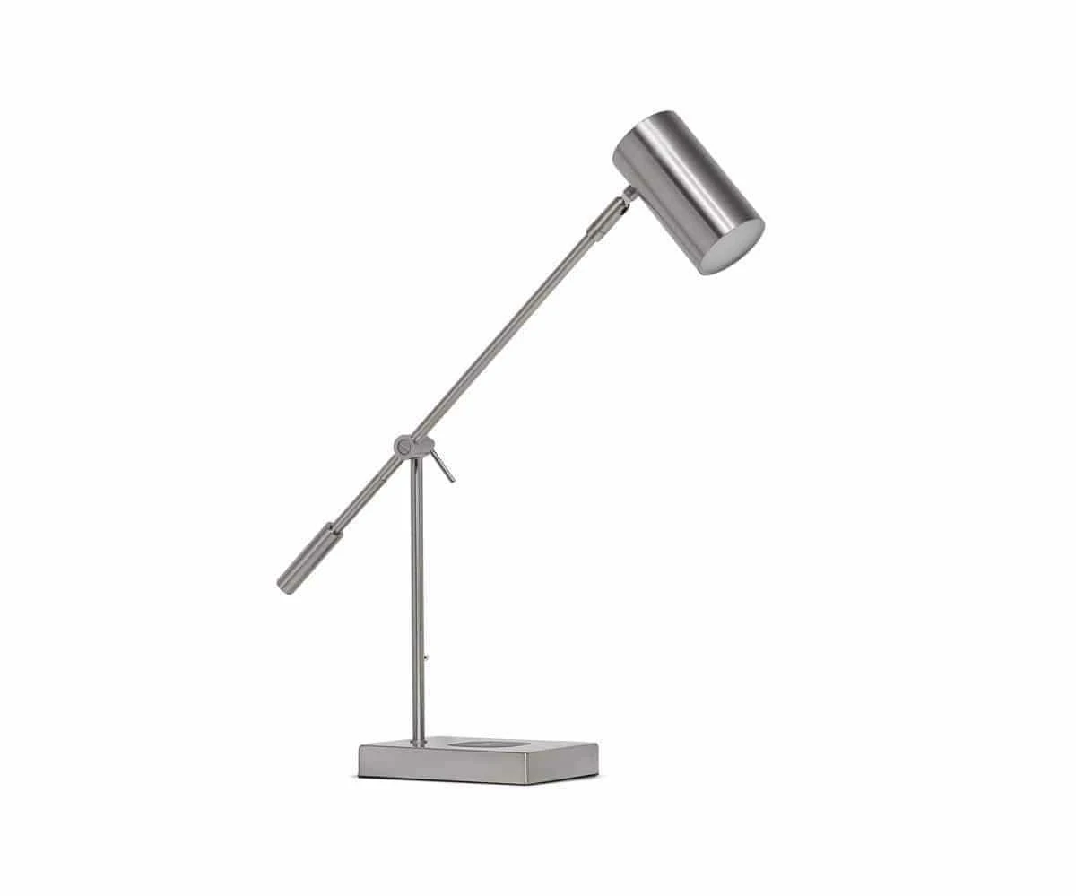 Stay focused with the Collette Desk Lamp. This adjustable task light is made from durable and sleek steel. A built-in USB port is ideal for keeping your devices charged and within reach. Includes one integrated 7W LED bulb.