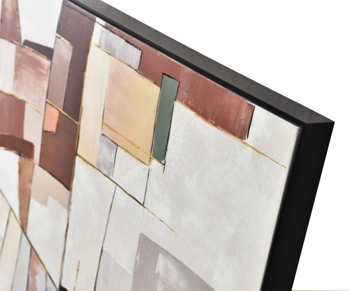 An homage to the simple geometry of cubism, the Cubist Sands I Oil Painting depicts a wide array of abstract blocks artistically spread across this eye-catching work of art. This oil painting is built around abstract lines that showcase earthy browns, tans, terracotta and cream. Simply layer this piece with other neutral hues and bold lines for a contemporary look, or pair with the classic curves and arches of mid-century styled designs to cement your mid-century look.