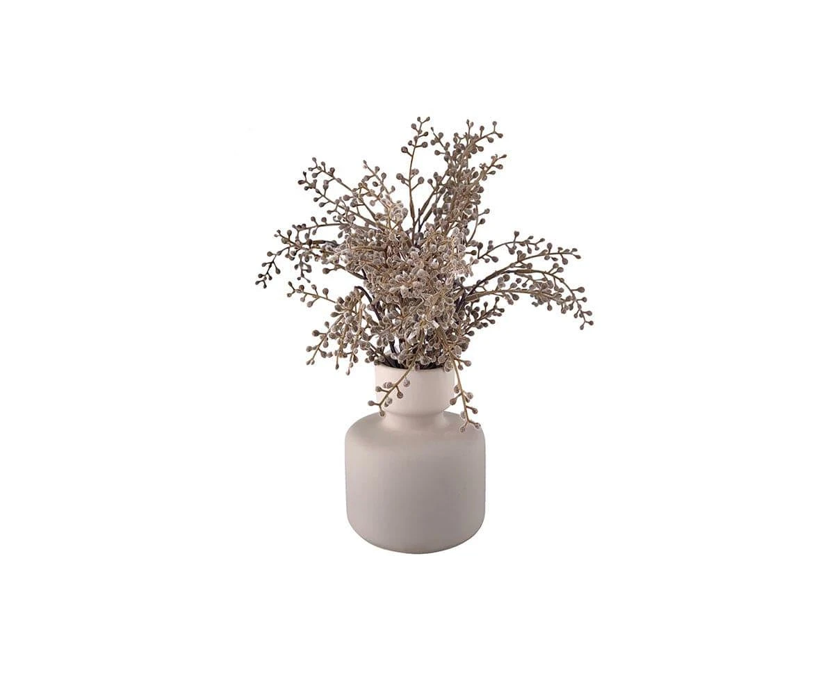 The Faux Catkin Stems lend your decor a touch of natural beauty, effortlessly elevating your decor with their neutral tones. Displayed in a ceramic vase, these elegant stems bring the texture, look and feel of natural beauty into your home or office space. Comes with ceramic vase included.