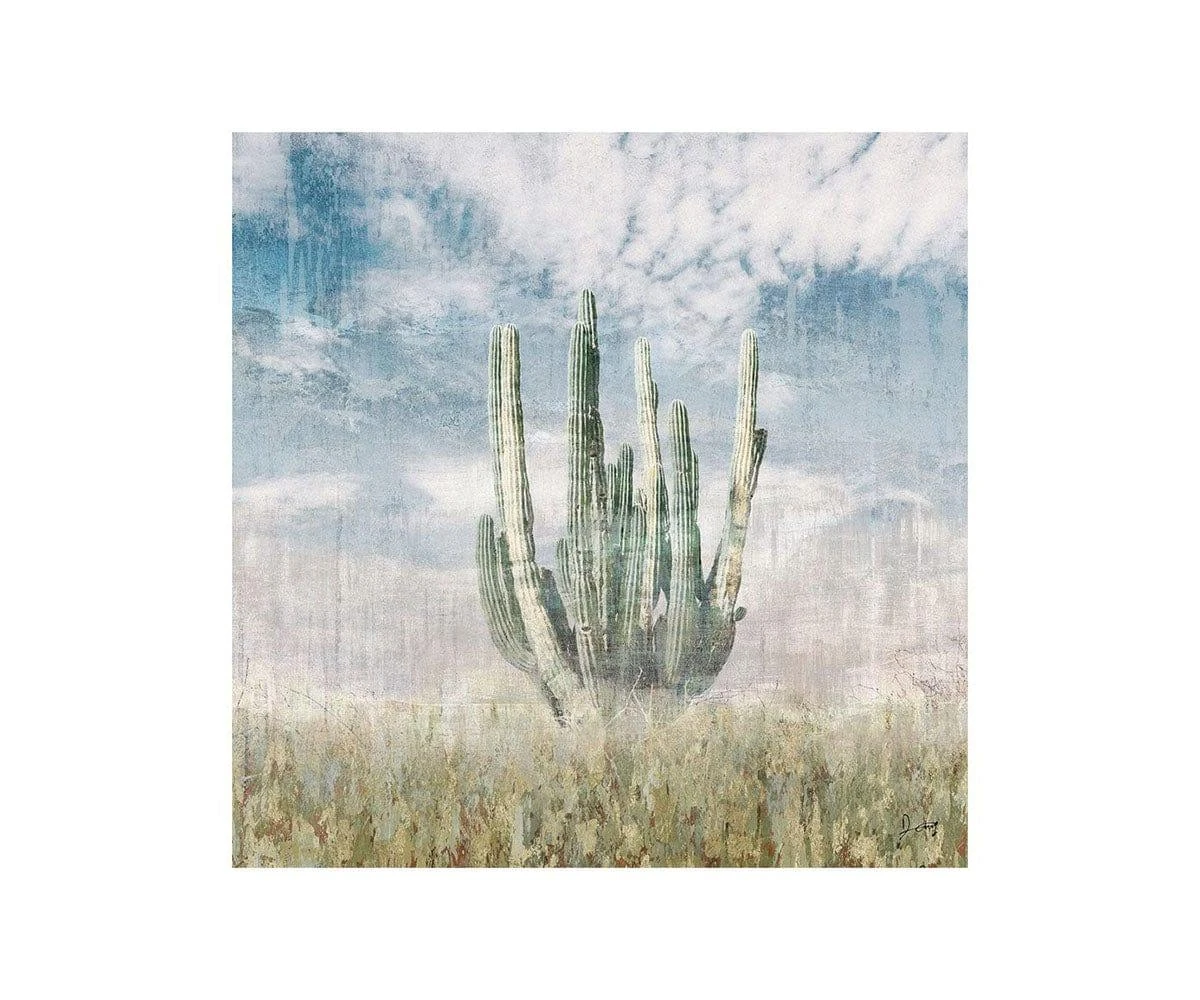 The Frontier Dream Art portrays a lone cactus set against the hazy blue of a cloud-strewn sky. Depicted as though it were being viewed through a shimmer of desert heat, this eye-catching scene blends pastel colors to create a style that’s equal parts soothing and rustic. Add this piece to your collection as an homage to wide open spaces, endless blue skies and wild desert air.