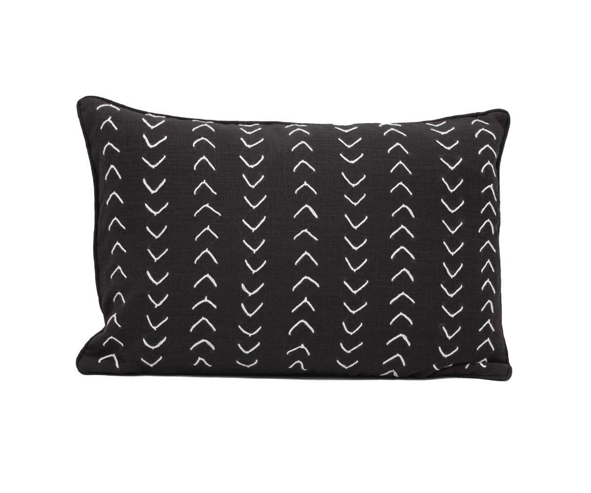 The Gamta herringbone stitch lumbar pillow combines modern aesthetics with timeless materials for an enduring approach to updating your living room or bedroom space. The viscose and linen blend cover features black Herringbone stitching. Zipper closure for easy wash.