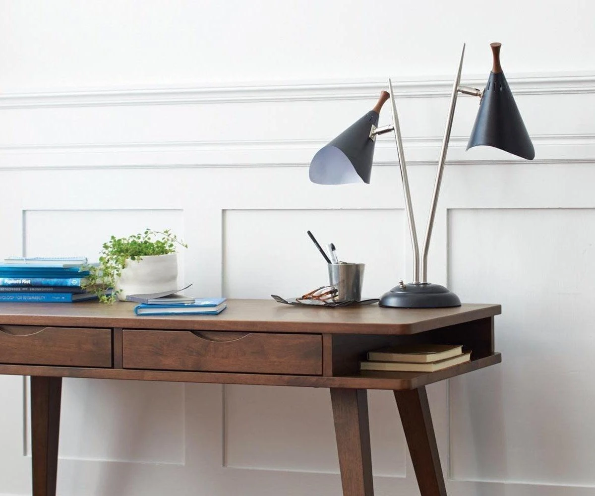 The Kabrino Table Lamp infuses style and flexibility into your home or office space. Black with satin steel accents, this every day lamp offers two adjustable shades to shine a light on your most important projects.