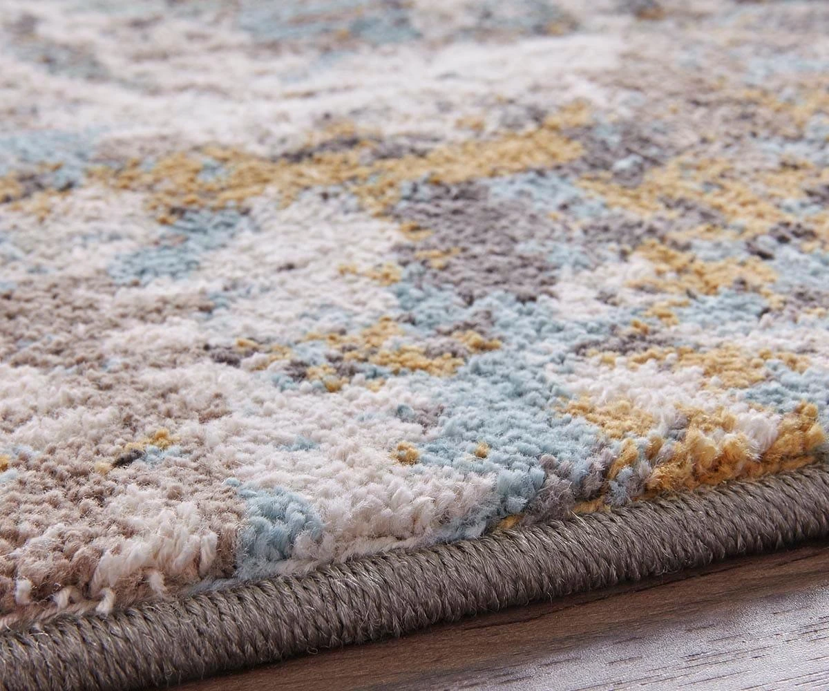 The La Brea rug is designed and produced in the USA by Karastan, a leader in eco-friendly rugs. A faded, multi-hued design is overlaid with off-white palmettes for a timeless look, underscored by pale blues, muted greens, a range of neutrals and subtle flecks of gold. We love it for contemporary and rustic spaces. This piece is crafted with SmartStrand®, an eco-friendly fiber made from renewable corn resources. It features built-in stain-resistance that will never wear or wash off and is smooth and silky to the touch. .