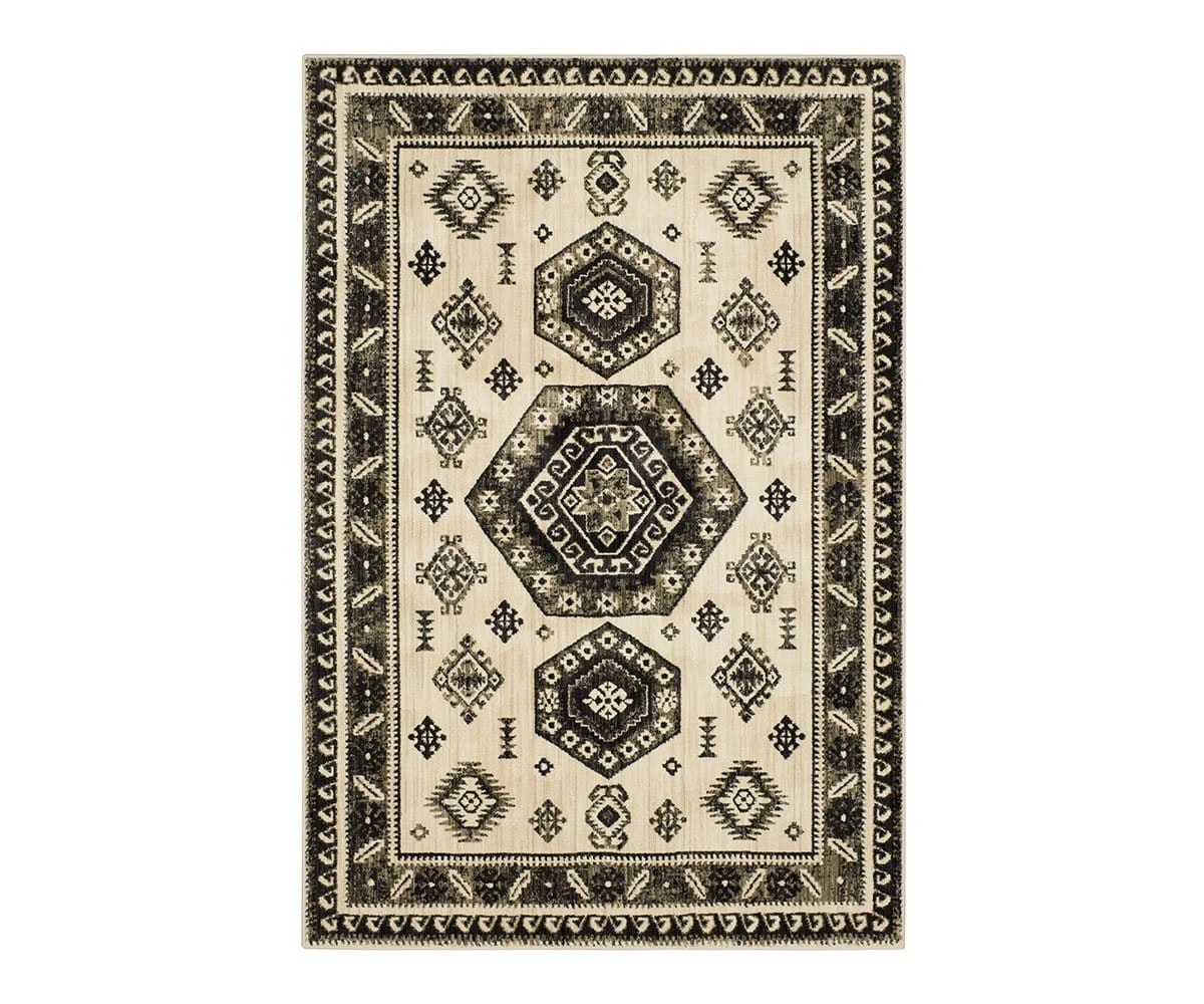 Simple, angular, and a touch of organic style — the Talisman Rug has a little bit of everything. The bold, dark patterning of this rug contrasts cleanly with shades of off-white and parchment. This piece is American-made, manufactured from recycled plastic bottles in a process that yields a surprisingly soft textile that’s durable and stain-resistant.Â