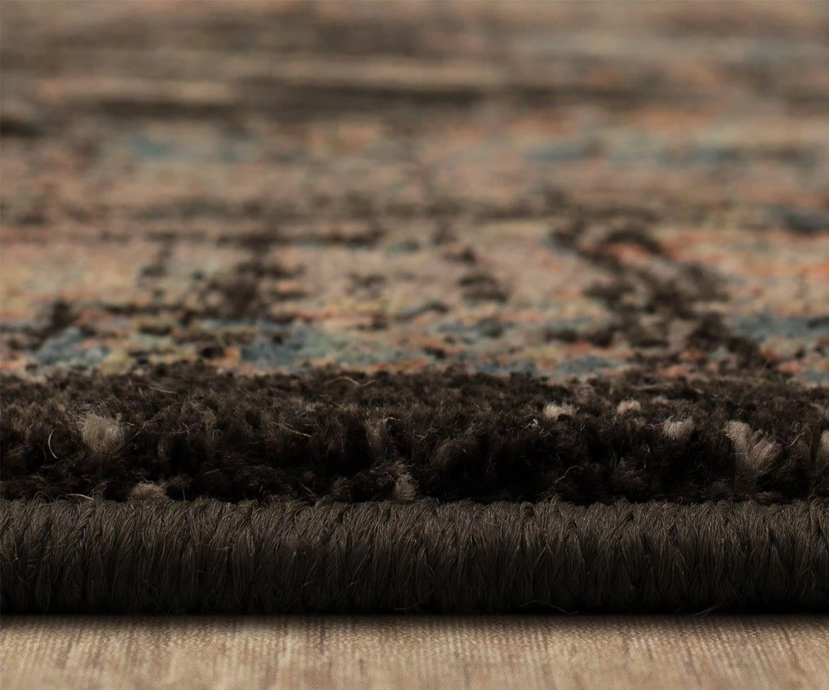 The Estate Somersby Black Rug has a traditional feel, and showcases darker tones meant to anchor any aesthetic. A natural patina lends this piece a sense of rustic, modern feel. This eco-friendly design was made in the USA from premium recycled plastic bottles that go through a transformation process to create strong, soft fibers. The result is this beautiful rug that offers superior durability and easy care while remaining remarkably soft to the touch.