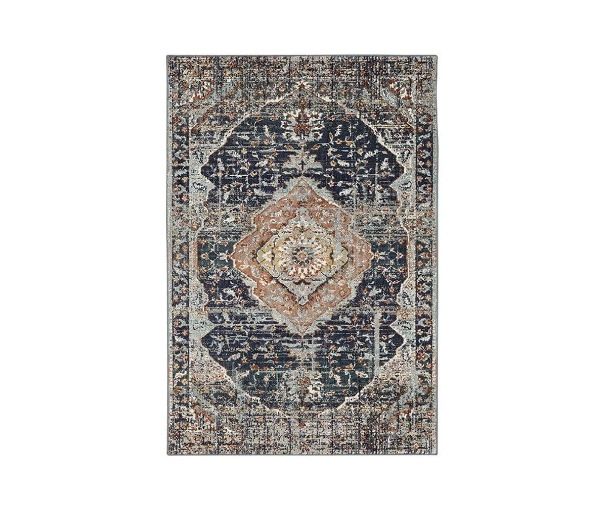 Think global and classic with the Solace Rug, designed and produced in the USA by Karastan, a leader in eco-friendly rugs. With Persian-inspired florets and scrollwork in a distressed, boho aesthetic, this textile infuses your living room, bedroom, dining room or office with timeless style. Made from EverStrandTM, a premium recycled fiber made using 100% recycled plastic bottles, this rug is incredibly durable with inherent fade and stain-resistance, yet feels soft to the touch.Â