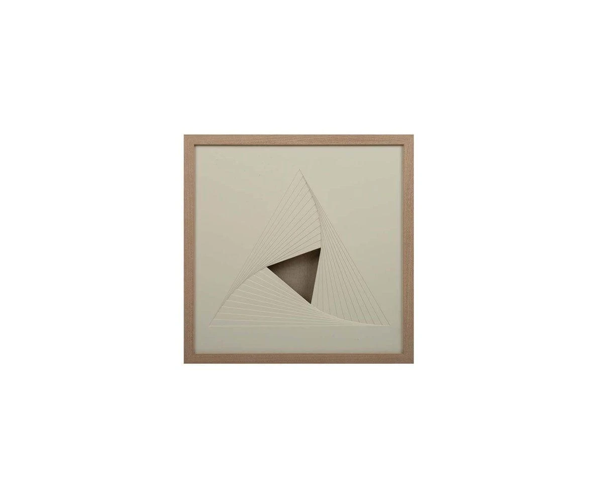 Layered Tranquility Wall Art reveals hidden depths as the viewer looks more closely. Carefully crafted, this work showcases multiple cream-colored pages in soothing hues that blend well with the neutral-toned wooden frame. Set within the borders of a multidimensional triangle, this piece features layers of paper designed to give a sense of an artistic ebb and flow. Layered Reflection and Layered Symmetry each sold separately.