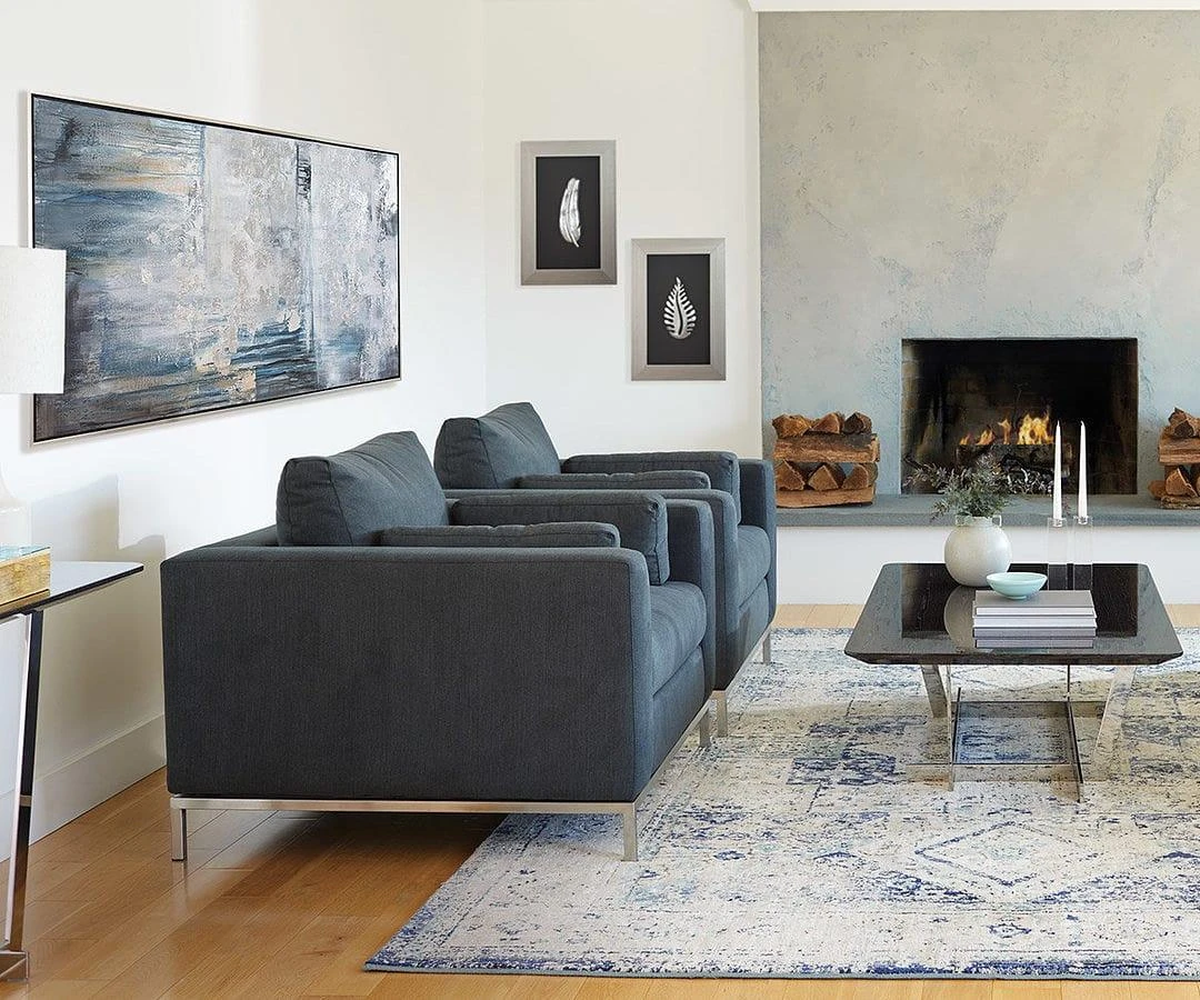 The Lyde Abstract Painting features a moody seascape of cool hues to add a calming atmosphere to your home. Includes a thin silver colored frame.