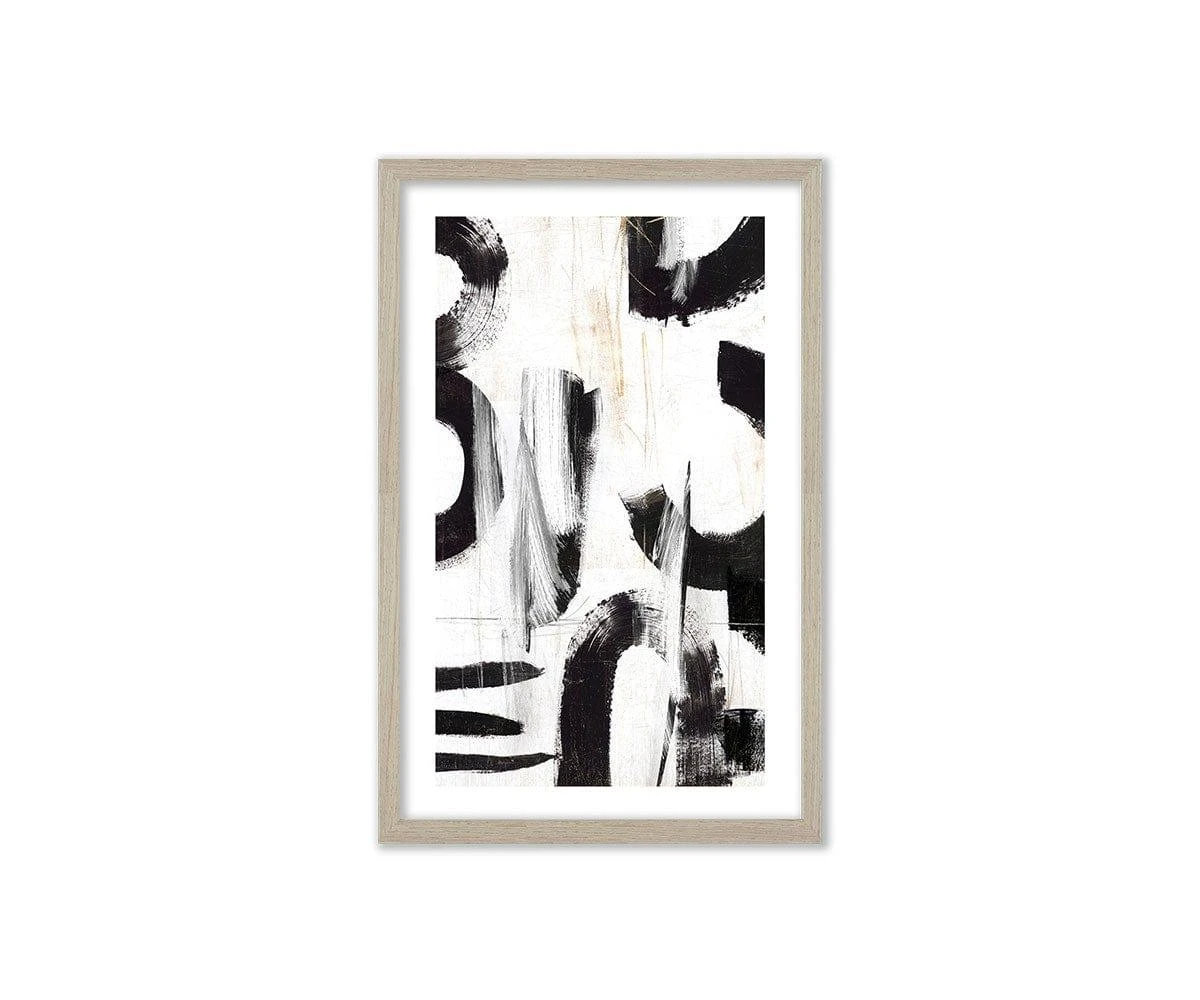 The framed Paper Thoughts I print features a contemporary blend of whimsical, abstract shapes. Starkly contrasting shades of black and white juxtapose to create an eye-catching work of art worthy of any modern space.