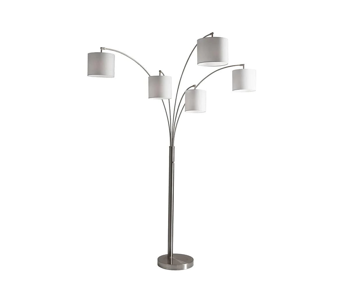 The Piera 5-Light Arch Floor Lamp serves your need to brighten many corners of your room. The unique design and classically neutral finish of this lamp make it a seamless addition to any existing decor style. This lamp features delicate arches and five gracefully suspended textured fabric shades; an ideal addition to any large room, the Piera Lamp softly illuminates dark corners and easily brightens surfaces.
