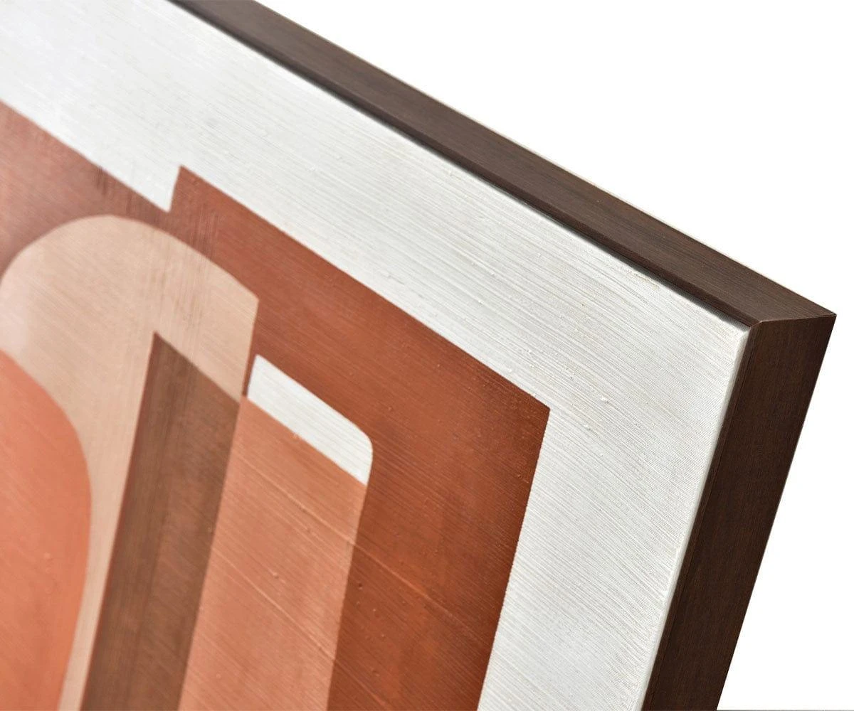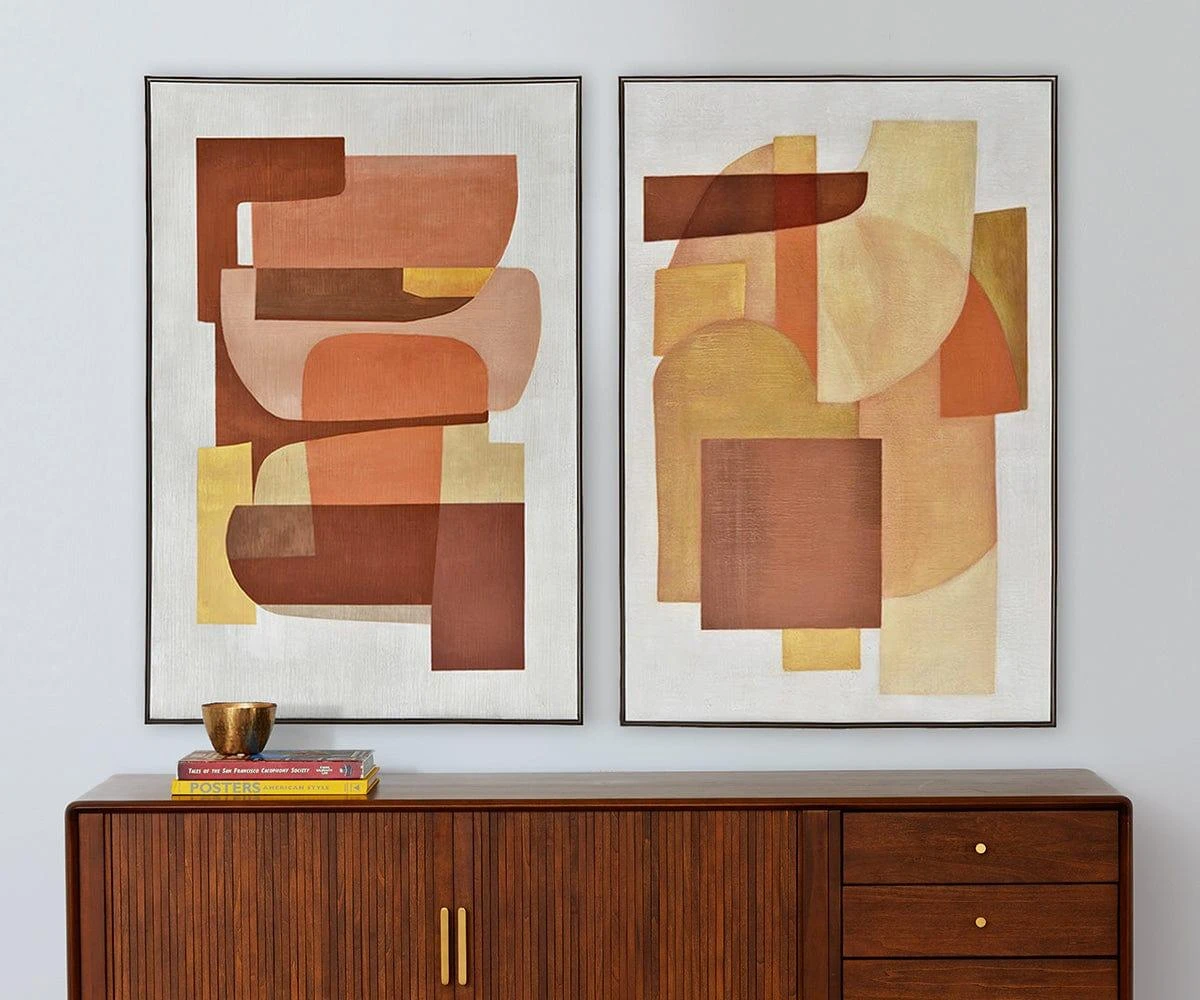 Reinforce your mid-century aesthetic with the Retro Sunset Oil Painting I. This piece takes the classic autumnal hues of goldenrod, terracotta, peach and burnt orange and layers them in striking fashion. This geometric homage to cubism features the same clean, curving lines so often found in mid-century furniture, thus making this piece an ideal way to cement this classic style in your home. Add this oil painting to any room and enjoy the way the vivid hues bring a sense of warmth to your space.