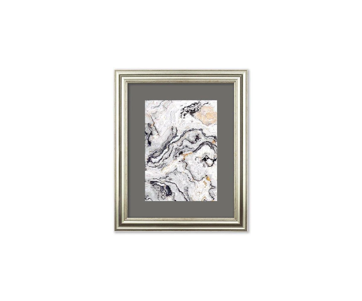 The swooping lines of the framed Silvery Surrealism II print are both abstract and opulent. Reminiscent of marble with its ebbing and flowing striations, this piece brings a sense of elegant minimalism to any room in which it is displayed. Hang this piece by itself for a solo statement, or pair it with the framed Silvery Surrealism I print to complete the look.