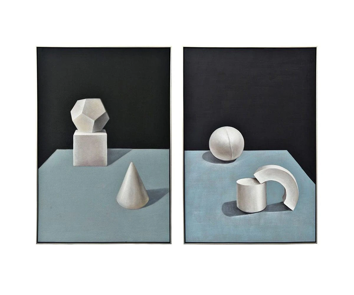 A study in shapes and shadows, the Still Life II Oil Painting fills your space with a sense of dimension and contemporary style. This piece evokes thoughts about the refined process needed to create works of art; every plane, angle and curve speaks to quality artistry. An homage to the striking impact of minimalism, this oil painting features contrasting tones that cement the overall composition as bold, modern and refined.
