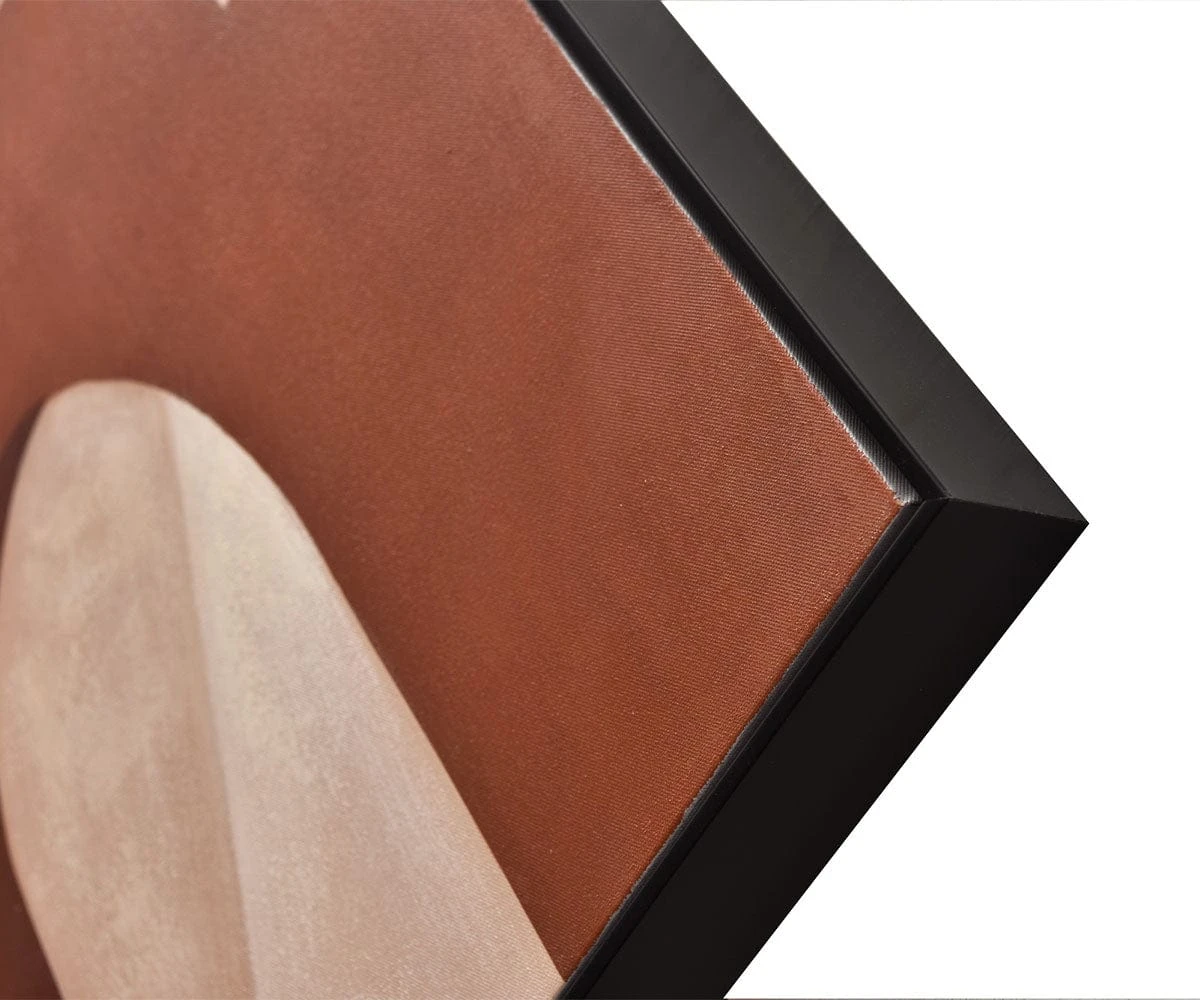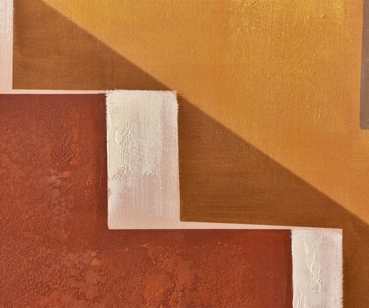 The Sunset Stairway Oil Painting features a striking blend of sharp angles and soft arches that speak to both contemporary and mid-century style. The minimalistic style and rich coloration of this unique piece is inspired by deserts in faraway lands; from the vivid terracotta walls to the tropical plants artistically silhouetted in arched windows, this oil painting breathes warmth and light into any space. Add this piece to your room to permeate your home with mid-century colors, contemporary composition and striking style.