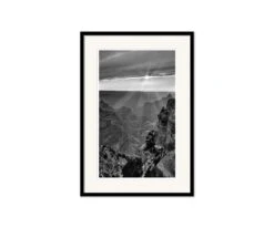 Vast Look depicts an expansive canyon lit by sunbeams that stream forth from behind a striking cloud line. Add this piece to your space and enjoy the way you can easily lose yourself in the wild, sprawling beauty of nature.