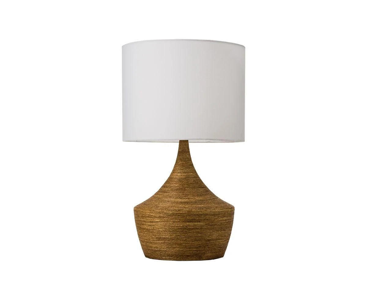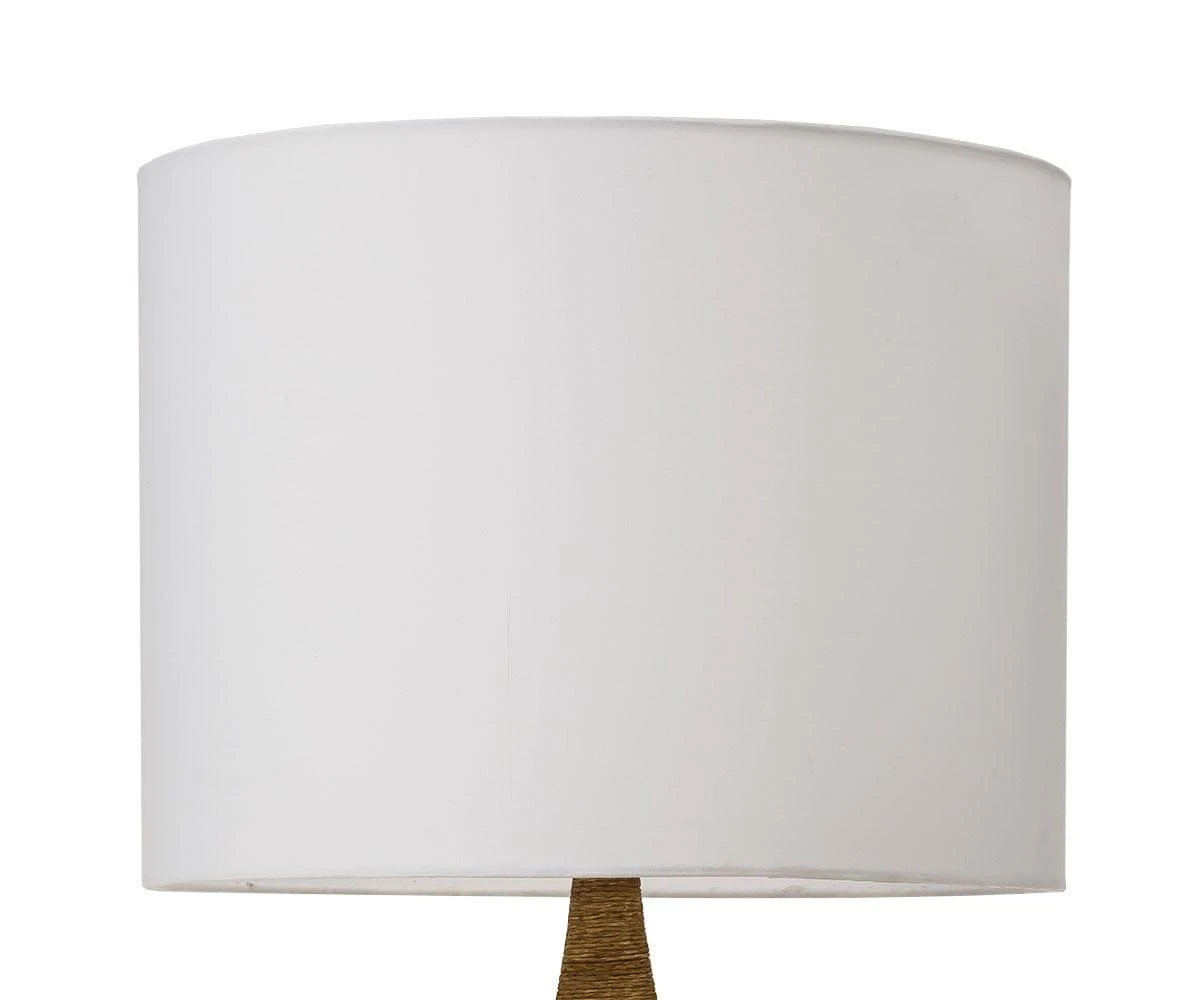 The Woven Rope Table Lamp is crafted from paper rope with a manila finish and topped by a fabric shade. This eye-catching lamp brings a rustic, textural component to your space. Add this piece to your home and enjoy the way the way it illuminates your desk, nightstand or table with soft, warm light.